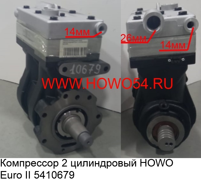 —Компрессор воздушный HOWO двухцилиндровый Euro II VG1093130001 КД10679