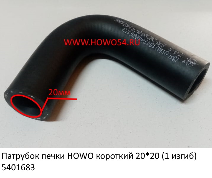 —Патрубок печки HOWO короткий (1 изгиб) (01683) WG1642840091